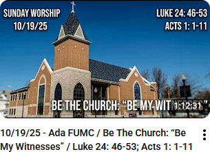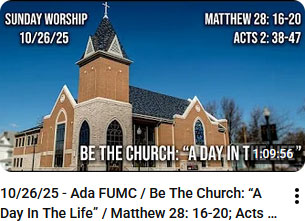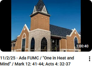 I want to invite you to prayerfully consider how God is calling you to "Be the Church" this year—how your prayers, presence, gifts, service, and witness can continue the story of Acts in our own time. Attached below you'll find the 2026 Pledge and Commitment Card, along with information about ways to give and serve through Ada First UMC. On Sunday, November 23, we will dedicate our commitments and celebrate the work God is doing in and through our congregation.